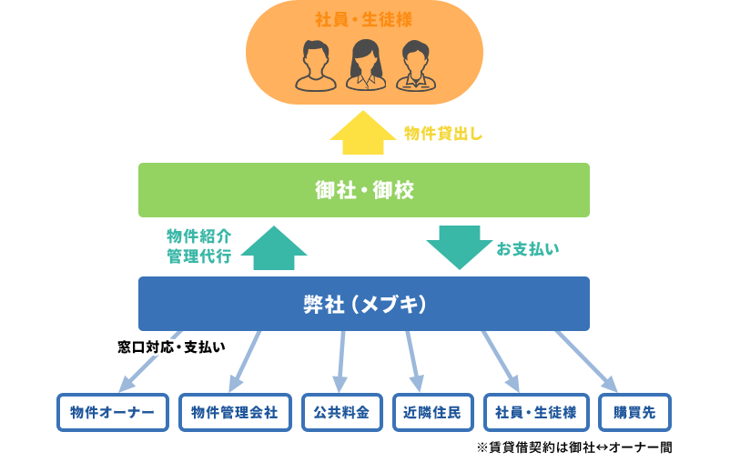 「外国人社宅・寮代行サービス」は社宅・寮を専門とする不動産会社メブキが提供する、